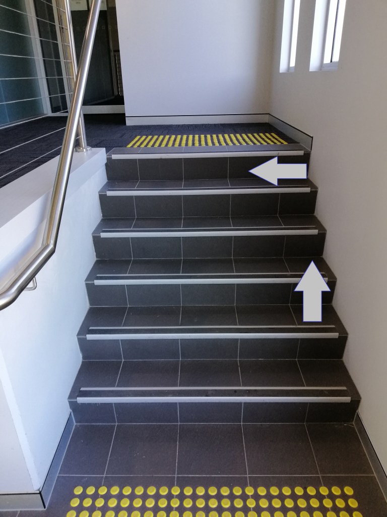 - Turn right and walk up the stairs, 16 steps (second photo).